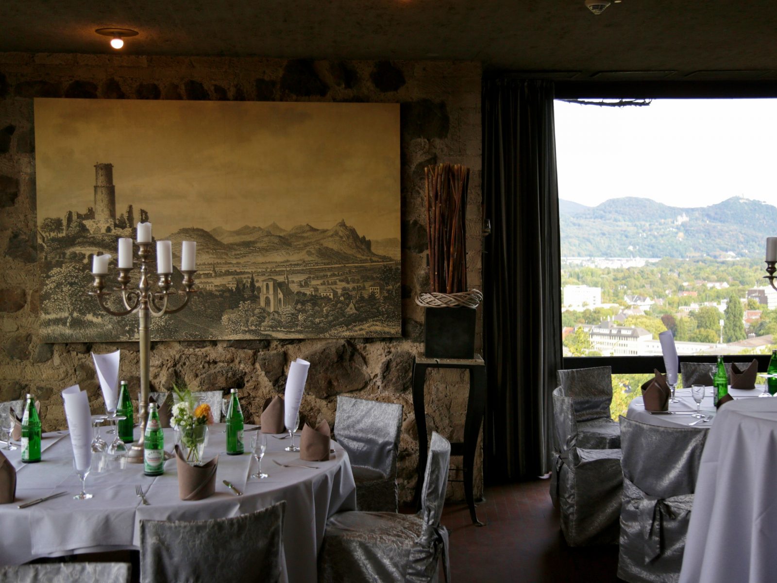 Nach der Vorspeise im Weinhaus spaziert die Gruppe hinauf auf die Godesburg, dem Wahrzeichen des Stadtbezirks. Hier empfängt Burgherrin Marion Hauck die Teilnehmer und geleitet sie hinter die historischen Mauern der nördlichsten Höhenburg des Rheinlands. Auf der Burg erwartet die Gäste dann nicht nur ein ritterliches Mahl, sondern auch ein atemberaubender Ausblick auf Bad Godesberg, Bonn, das Siebengebirge und das Rheintal.